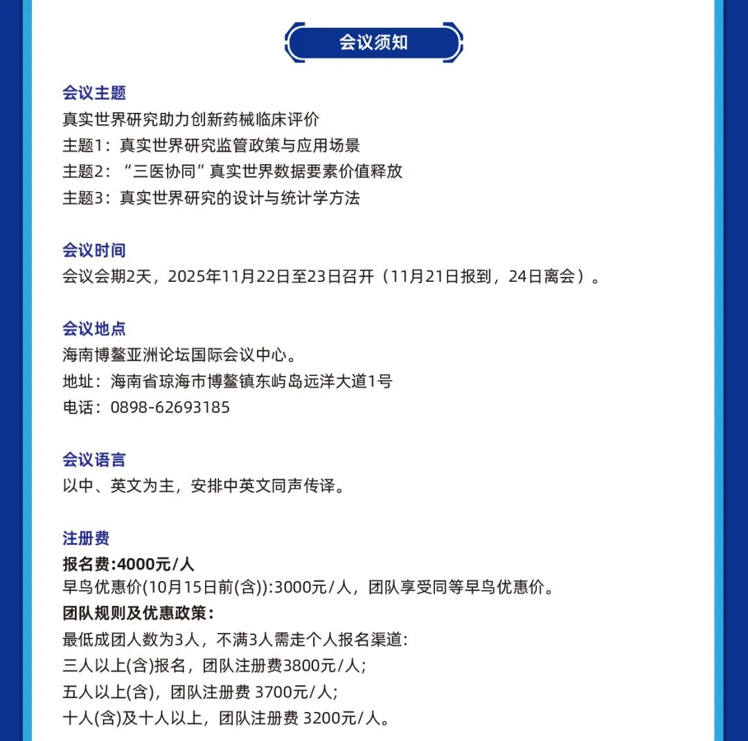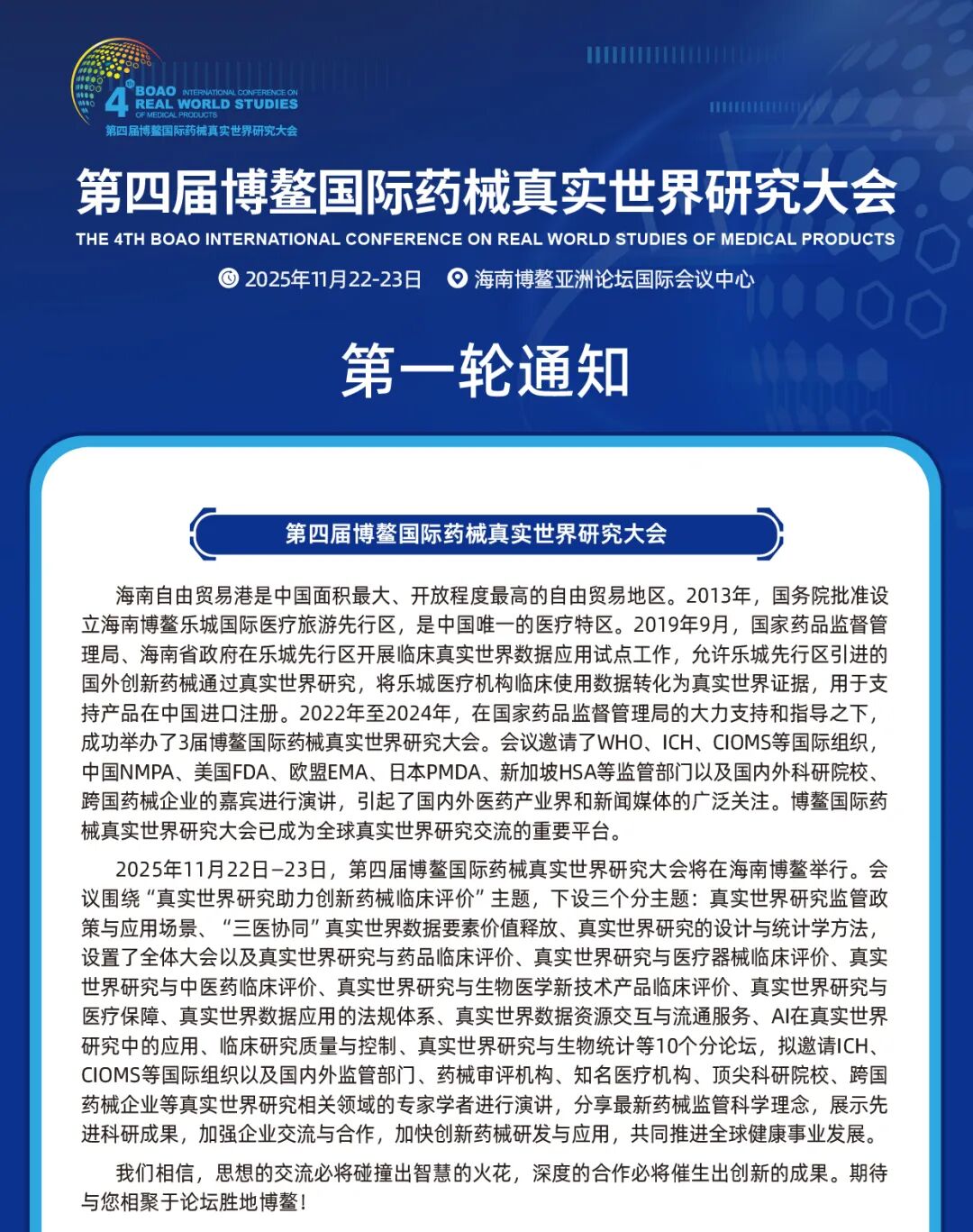 首轮报名开启!第四届博鳌国际药械真实世界研究大会第一轮通知来了→