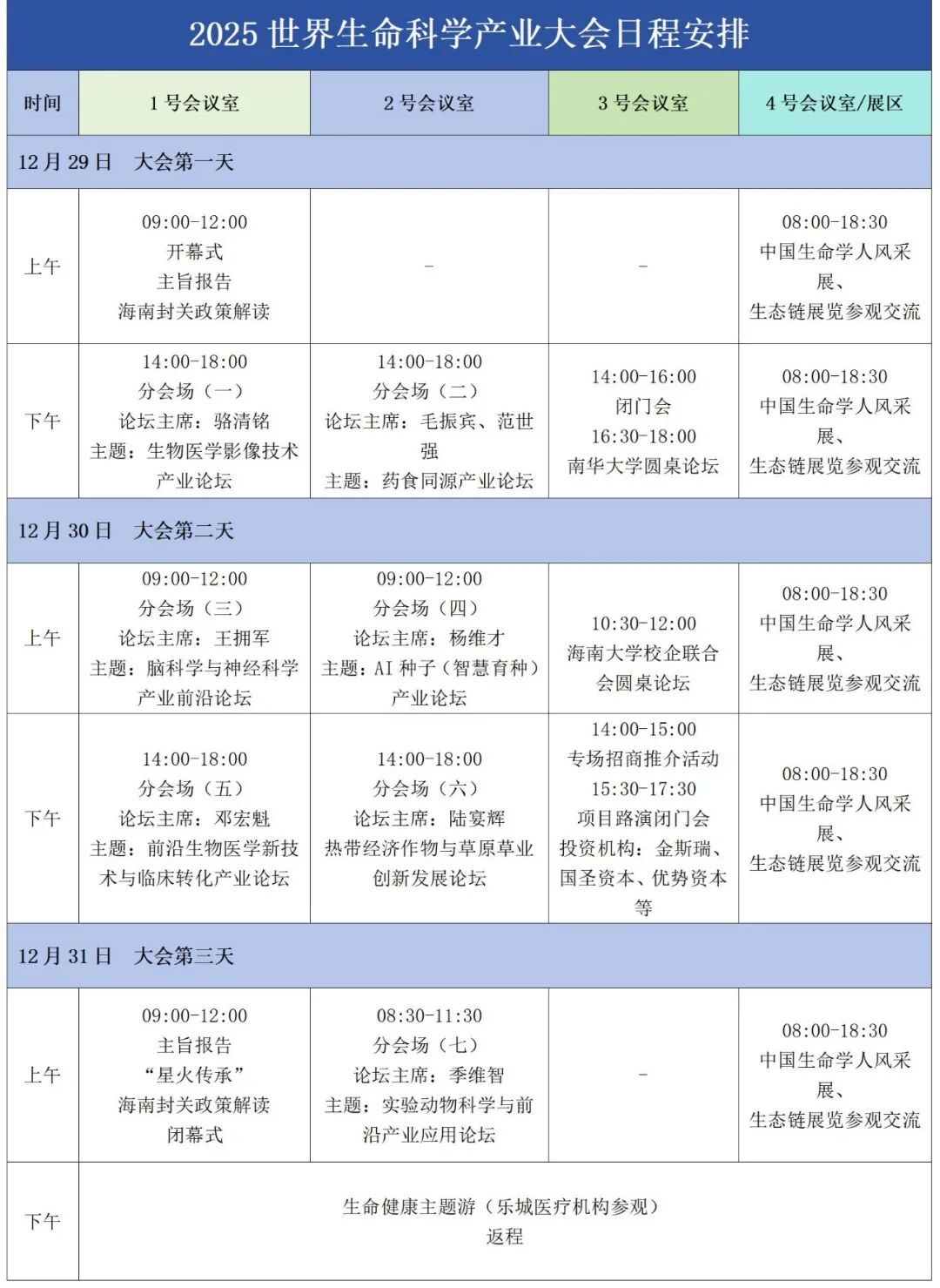 世界生命科学大会是我国生命科学领域层次高、覆盖面最广、影响力最大的国际学术盛会之一。为积极响应海南自贸港封关之势,由海南大学与中国科协生命科学学会联合体联合主办的“2025世界生命科学产业大会”将于2025年12月28日至31日在海南省琼海市博鳌乐城举行。这是海南自贸港2025年12月18日封关运作后首场国际性生命科学产业盛会。